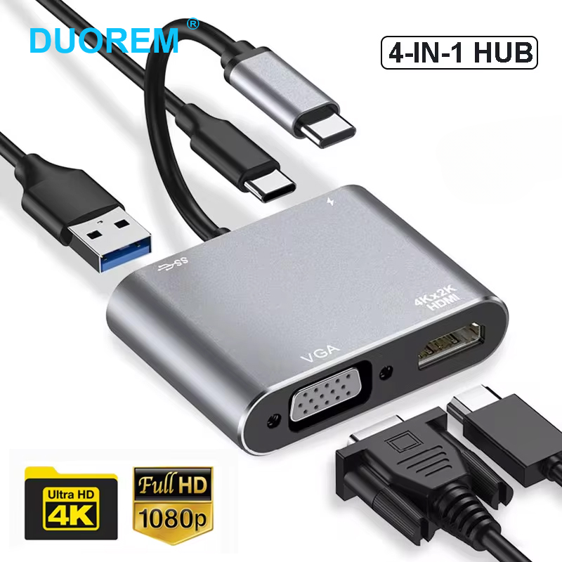 4 Em 1 Tipo-C USB 3.1 Para 4K HDMI 1080P VGA 3.0 Adaptador De Cabo Conversor Fêmea Windows Android