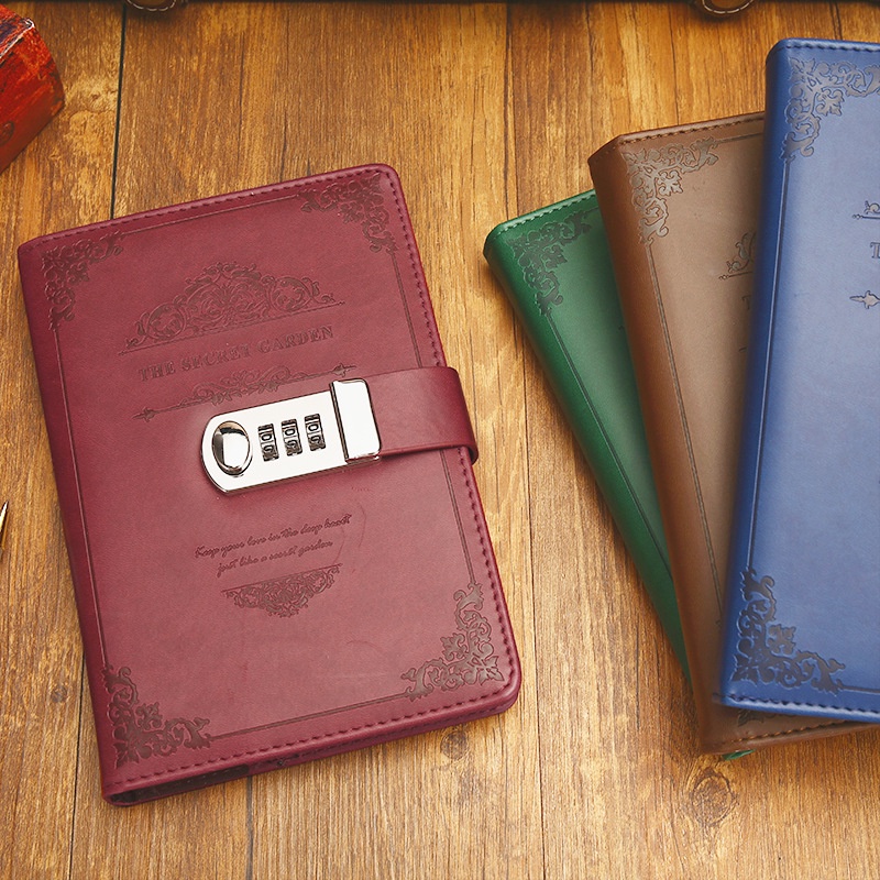 Lock Diário PU Couro Passoword Caderno De Com Suporte Para Caneta Digital Bloco De Notas De Escrita Pessoal 100 Folhas