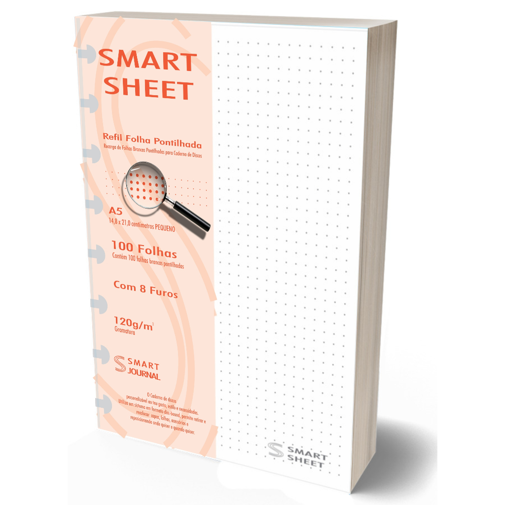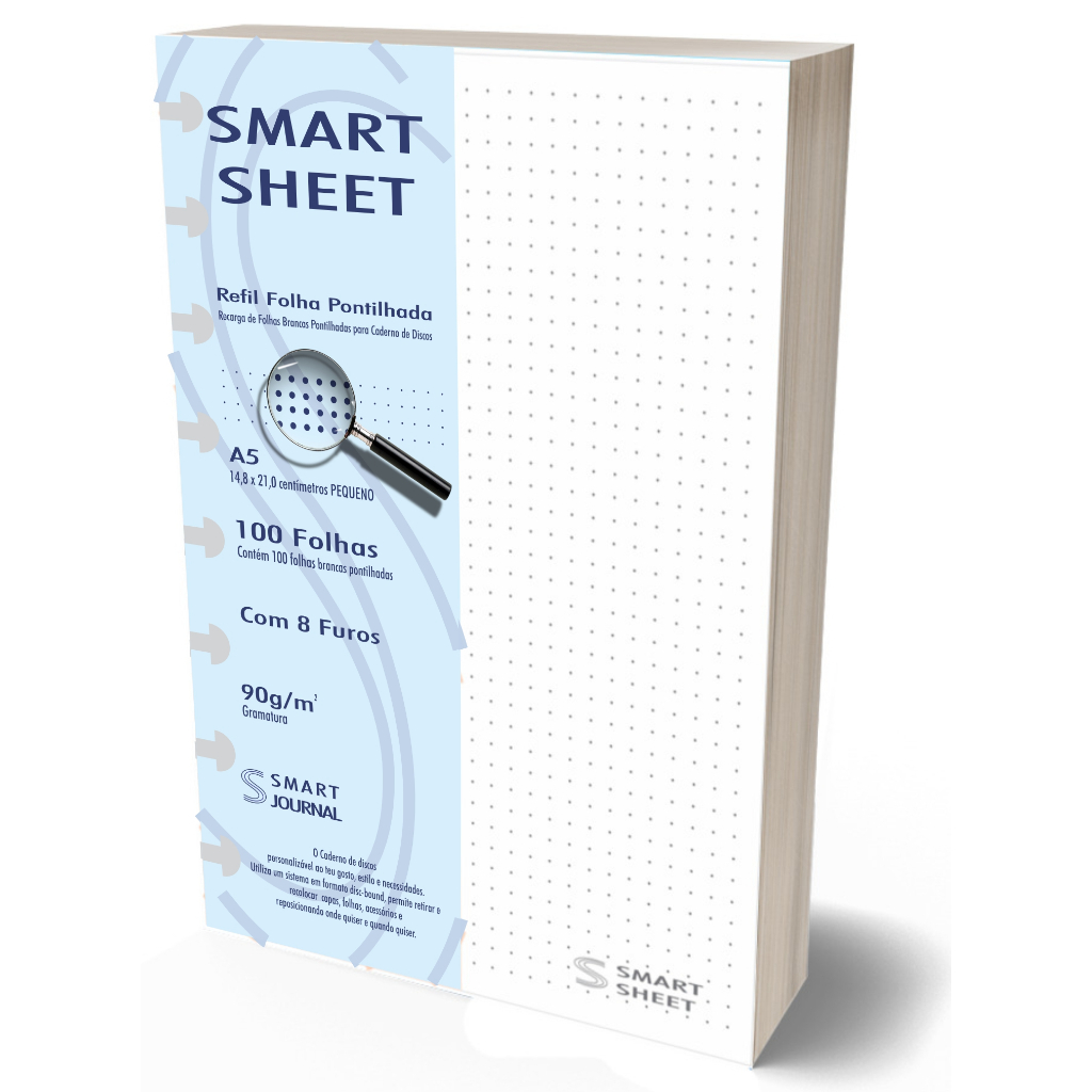 Refil Caderno de Disco 120g 100 Folhas Pontilhado Pequeno A5 8 Furos Smart Sheet