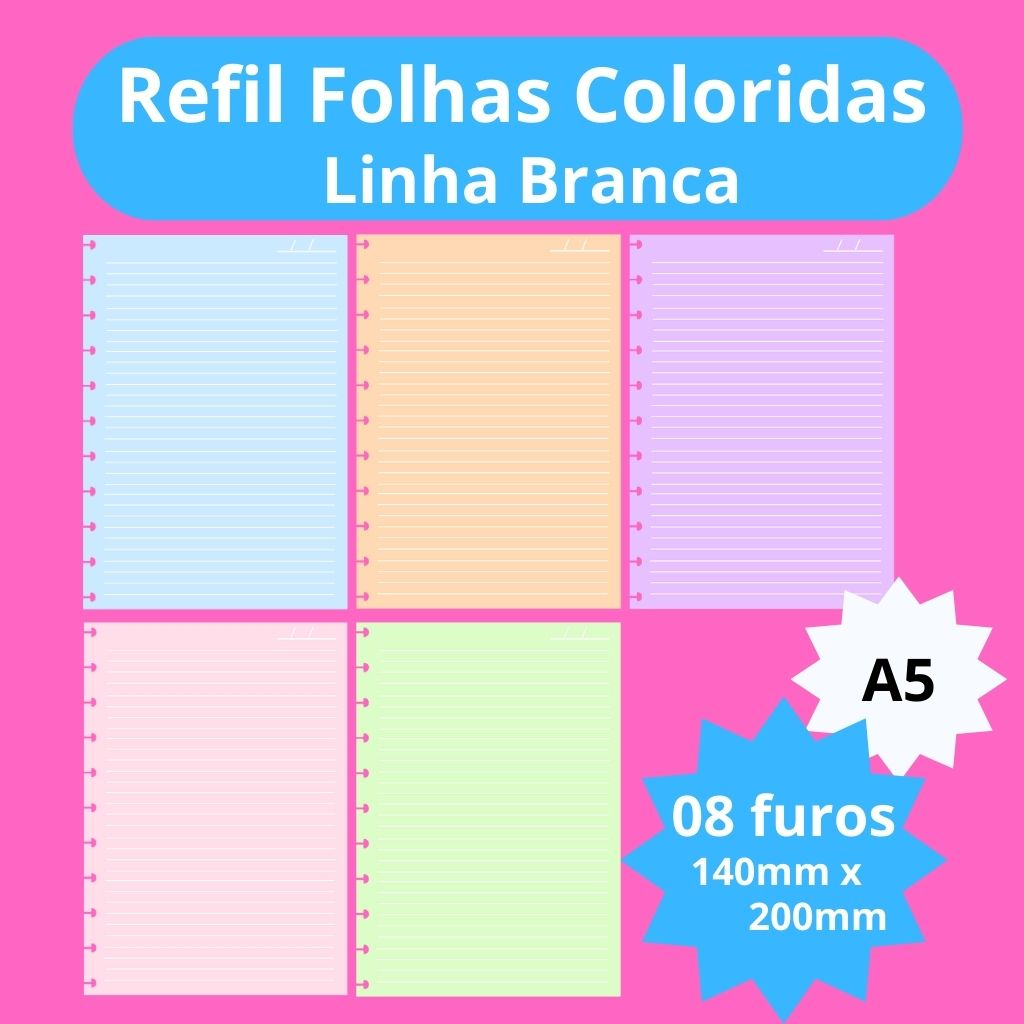 Refil A5 Folhas Coloridas com Linha Branca para Caderno de Disco