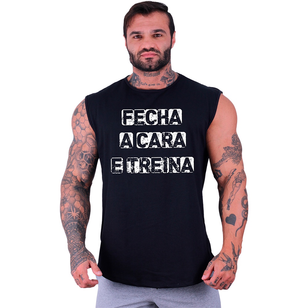 Regata Machão Longline Masculina MXD Conceito Academia Musculação Fecha a Cara e Treina Estampas Exclusivas
