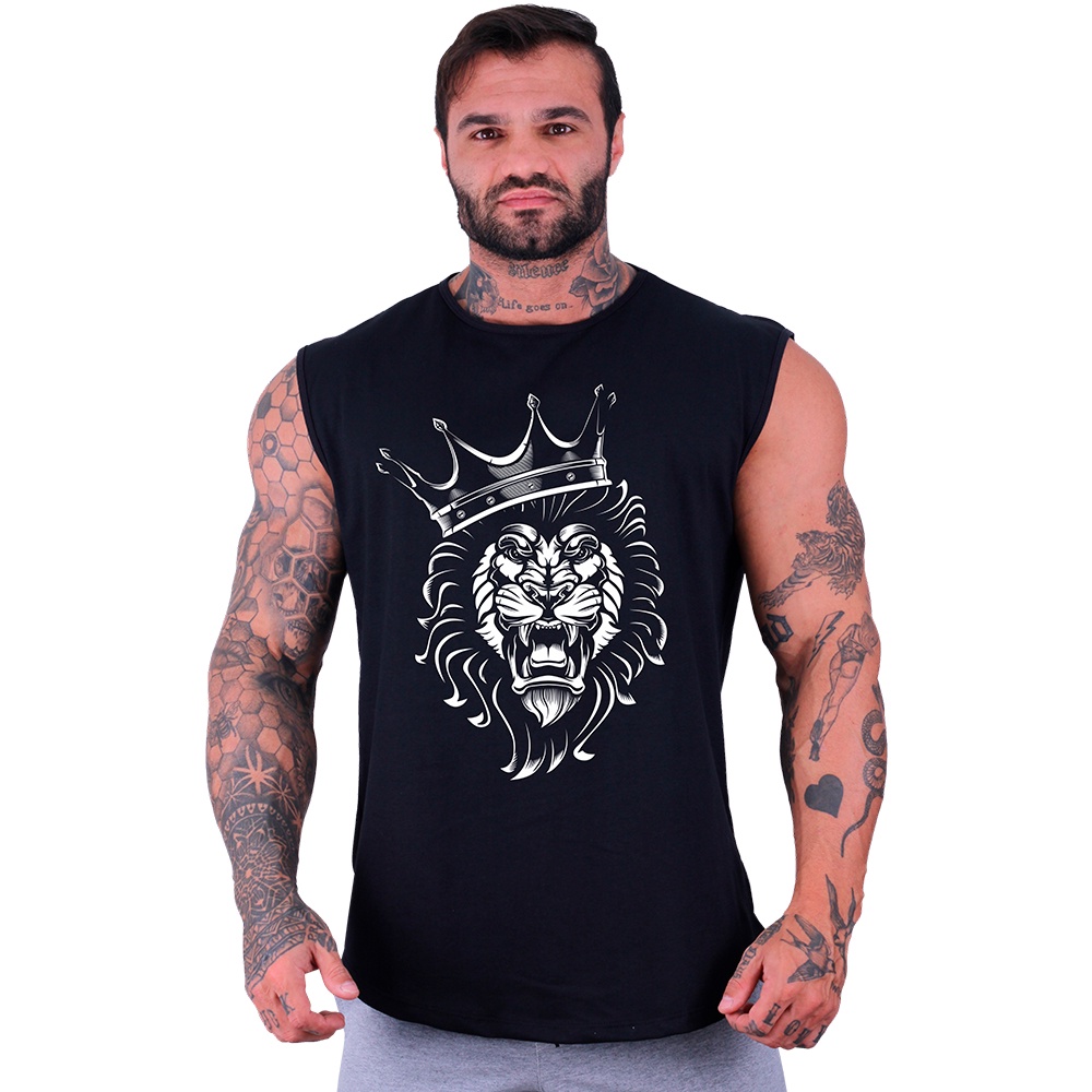 Regata Machão Longline Masculina MXD Conceito Academia Musculação Leão Rei