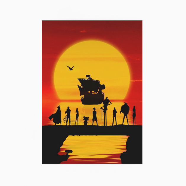 Quadro Metalizado Navio de Luffy em Sombras One Piece Anime Placa Decorativa Brilhante Pôster