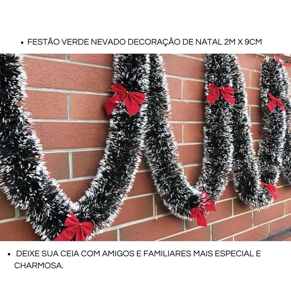 5 Festão de Natal Verde Nevado Aramado 2 Metros x 8CM Decoração de Natal, Festão Verde, Arvore de Natal.