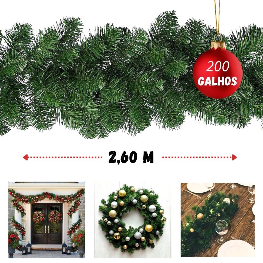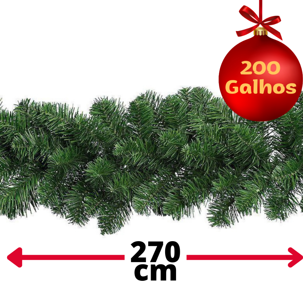 Festão Aramado 200 Galhos 2,7m Natal Flexível Grosso Verde Decoração Natalina Enfeite