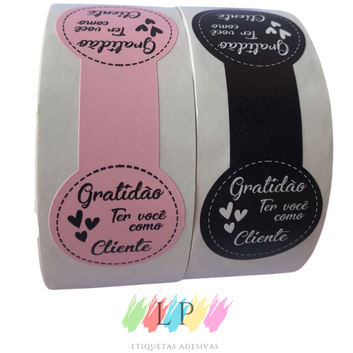 500 Etiquetas Adesivas para Lacre de Sacola Kraft - Lacre para fechar sacola - Etiqueta autocolante para loja de roupa - Loja de roupas, comercio em geral - Gratidão ter você como cliente - ROSA E PRETO