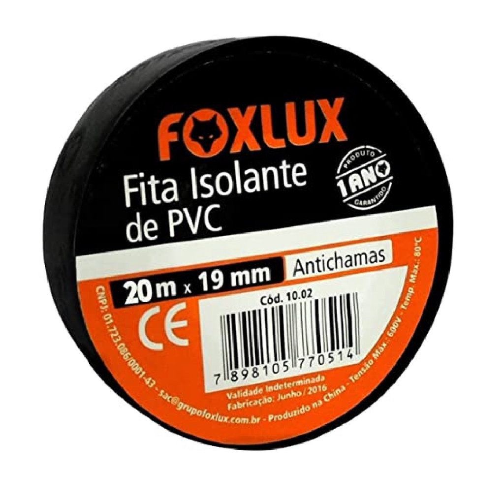 Fita Isolante de PVC Antichamas 20M x 19mm Preta 1 Unidade Foxlux