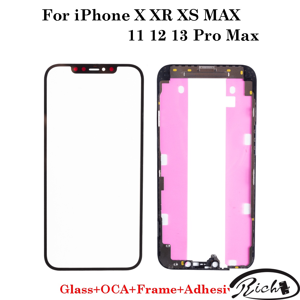1 Conjunto Lente De Vidro Da Tela Frontal + OCA + Frame LCD Bezel + Fita Adesiva Para iPhone X XS XR Max 11 12 13 Pro Mini