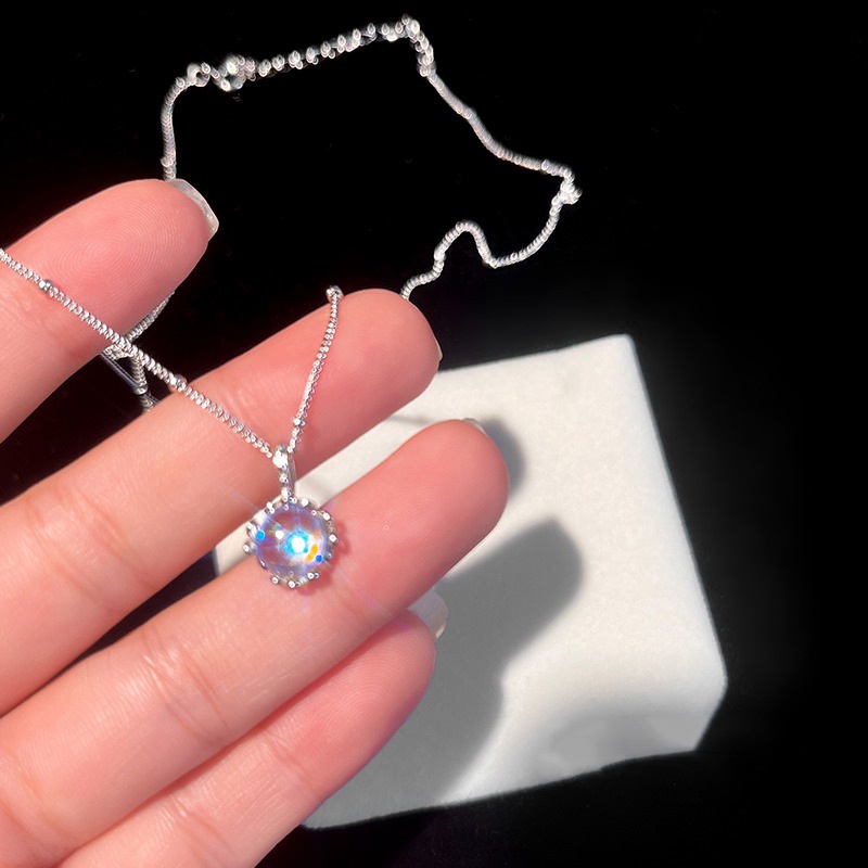 925 Prata Colar De Luz Da Lua Colorido Verão Feminino Sonho Azul Cadeia De Clavícula Arredondada Acessórios Gift