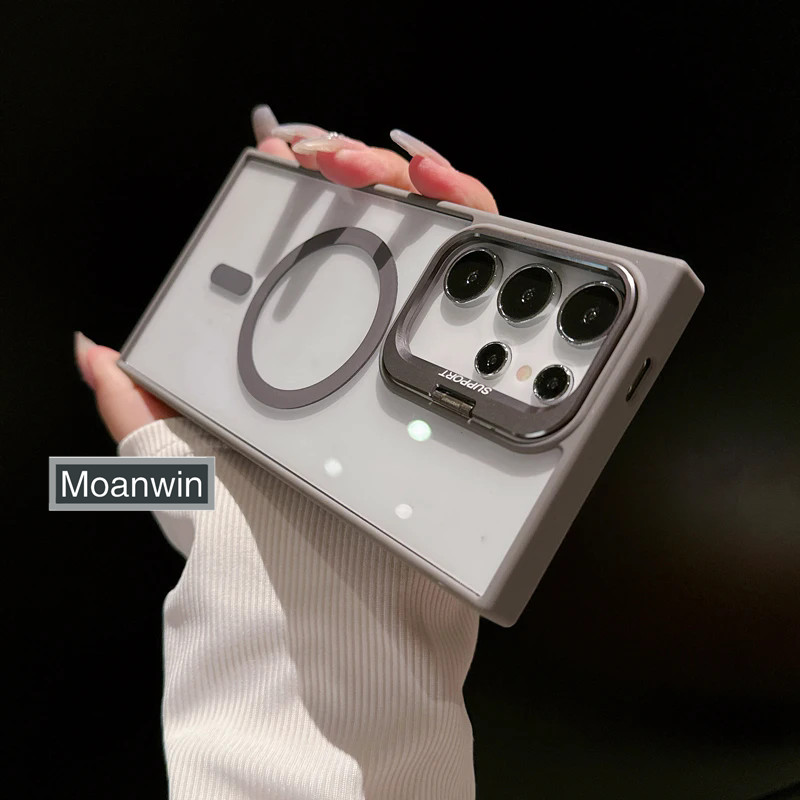 Para A Capa Transparente Do Suporte Oculto Magsafe Samsung Galaxy S24 Ultra S23 S22 Plus S23 FE De Carga Magnética Sem Fio À Prova De Choque