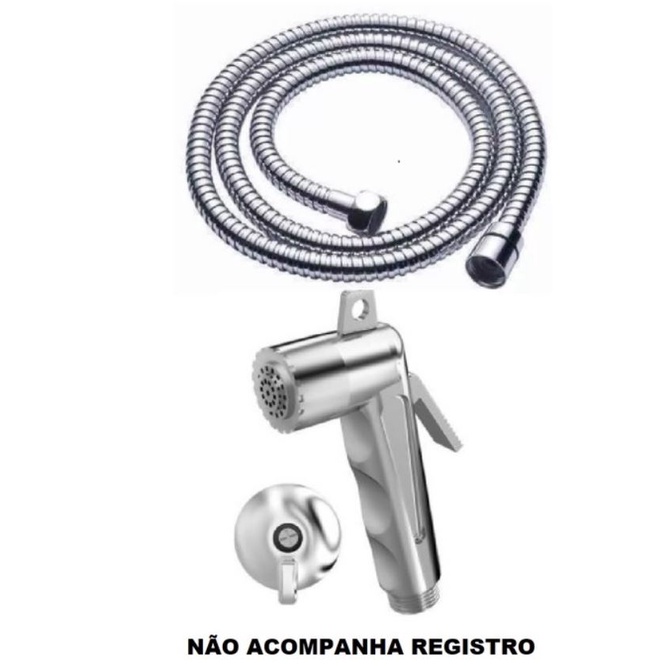 KIT para ducha higiênica com Mangueira Flexível em Aço Inox 1,20 Cm e gatilho chuveirinho cromado abs. kit banheiro