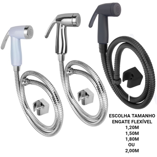 Kit Ducha Higienica Gatilho ABS TOP Branco Cromado ou Preto e Engate Mangueira Flexivel ( Escolha Comprimento )