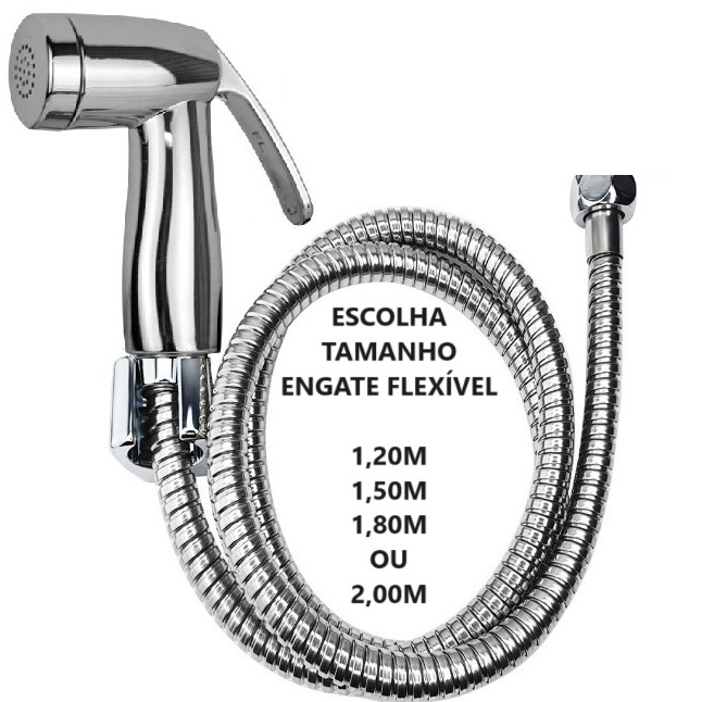 Kit Ducha Higienica Gatilho ABS TOP CROMADO e Engate Mangueira Flexivel em Inox ESCOLHA TAMANHO