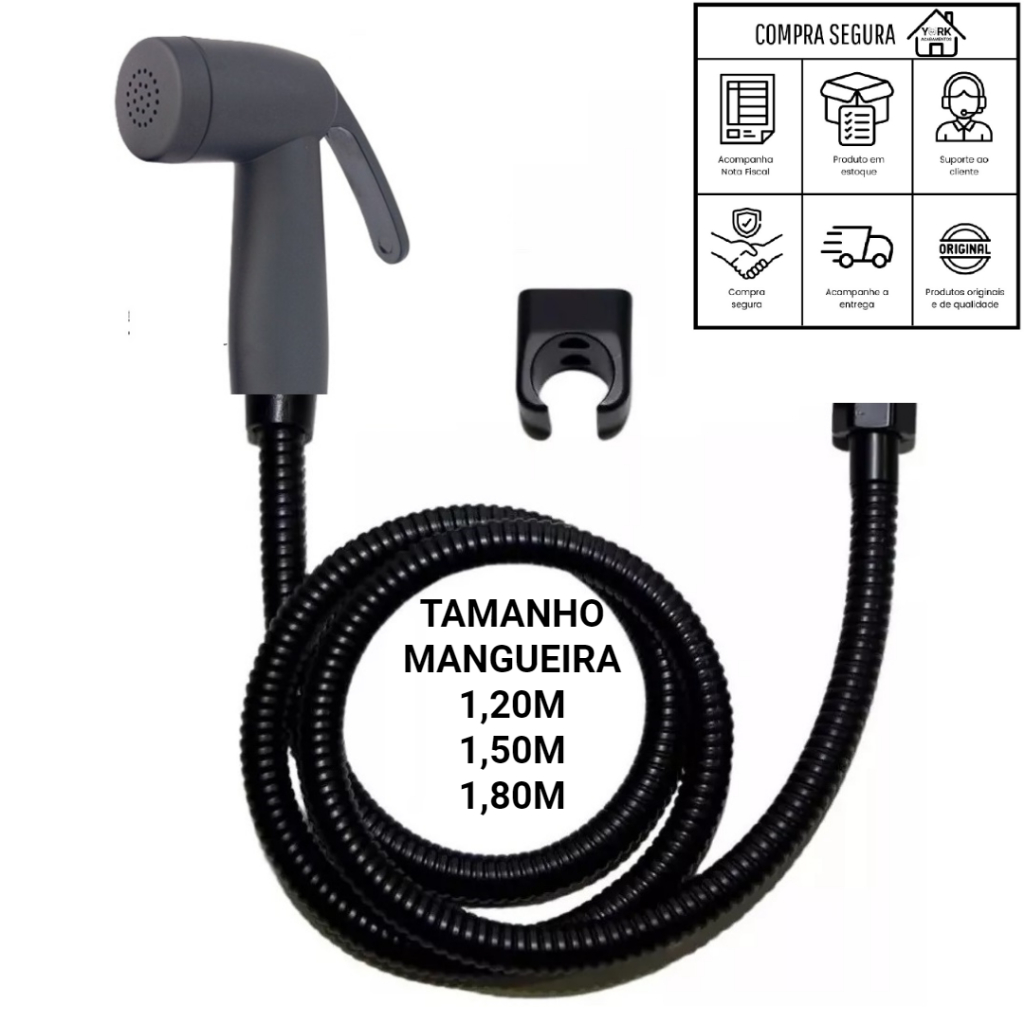 Kit Ducha Higienica Gatilho ABS TOP PRETO FOSCO e Engate Mangueira Flexivel em Inox ESCOLHA TAMANHO