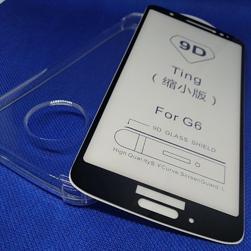Kit 2 em 1 - Motorola Moto G6 ( XT1925-3 ) - Película de Vidro 9D Frontal ( Protetor de Tela ) e Capa Capinha Case Anti-Impacto em Silicone TPU Transparente