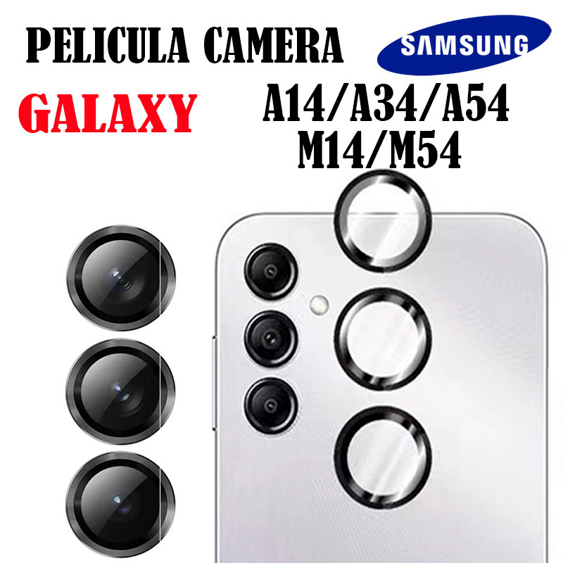KIT(3 PCs)Película De Câmera SAMSUNG A54/A24/A14/A34/M14/M54 Protetor Da Lentes com Anel De Metal