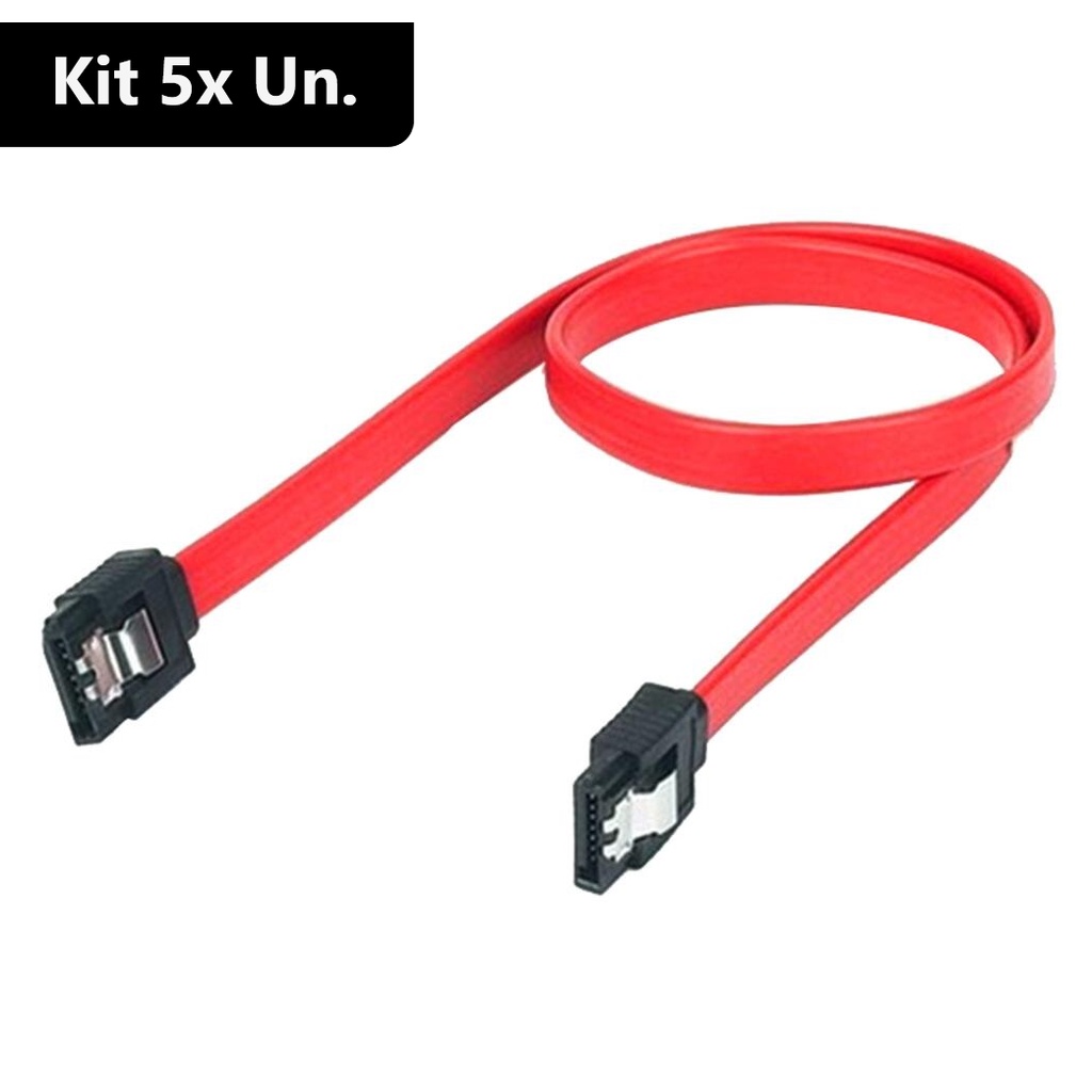 KIT 5 Cabo SATA de Dados 50cm Vermelho Com Trava 6Gb/s SATA 3