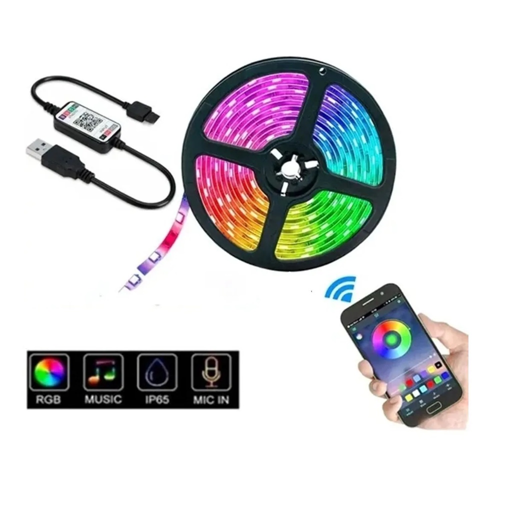 Fita Led Alimentado Por USB Rgb 5050 2 a 10 Metros com Controle ou App Bluetooth Android iOS e Sincronização de Musica Home TV PC Monitor