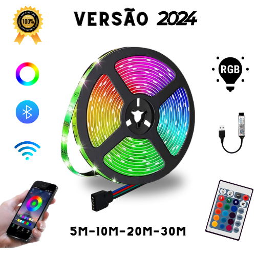 Fita LED Rgb Bluetooth 5050, 5m, 10m, 15m e 20 Metros APP USB luz e controle remoto infravermelho