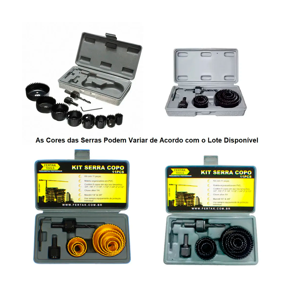Kit Jogo Serra Copo 11 Peças Para Madeira Gesso Com Estojo Fertak Original