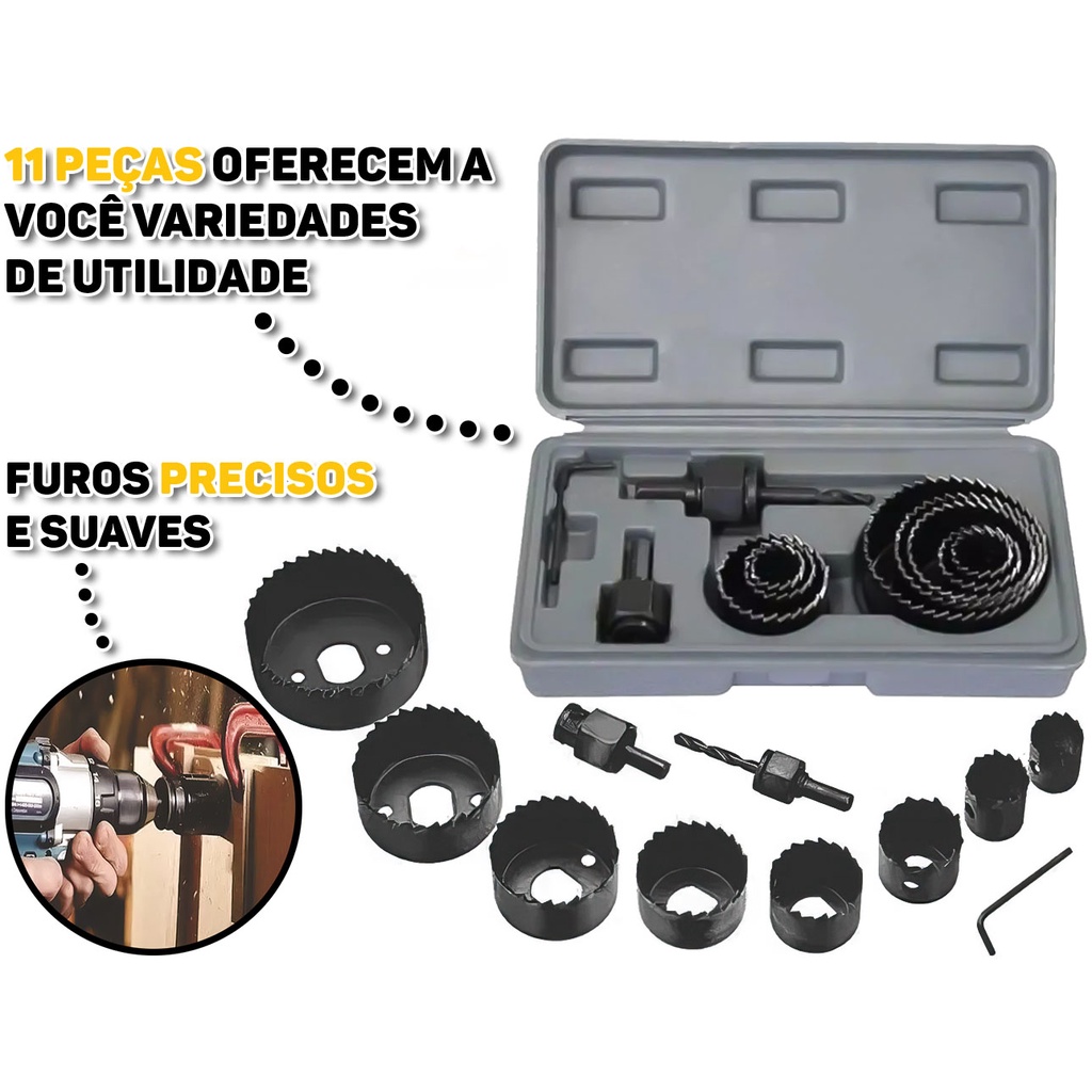 Kit Jogo Serra Copo 11 Peças Para Madeira Gesso Com Estojo DIY Excelente Escolha