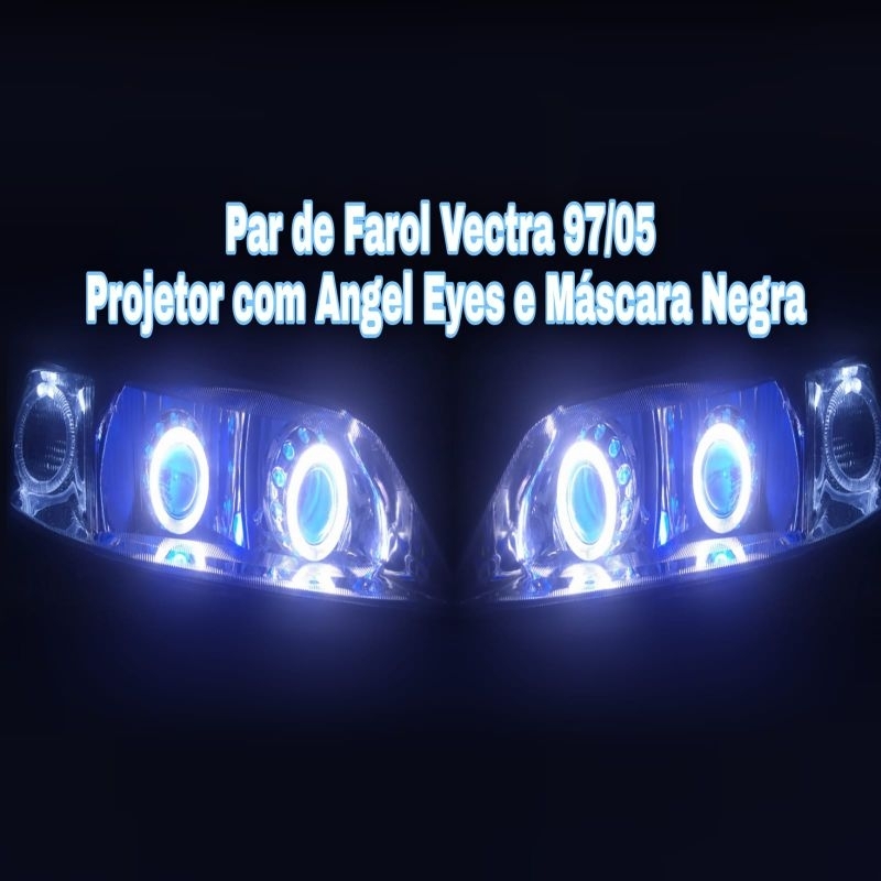 Par de Farol com Projetores para Vectra 00 01 02 03 04 05 Serve 97 98 99 Máscara Negra + Angel Eyes e Devil eyes