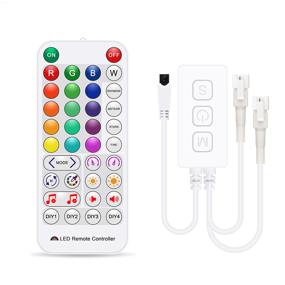 Controlador De Música WiFi Smart RGB Para Fita LED + Controle Remoto Infravermelho 24 Teclas Sem Fio Colorida