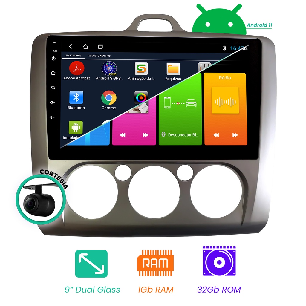 Central Multimídia para Ford Focus 2009 a 2013, com Sistema Android, Tela 9", 32Gb ROM, GPS, Wi-Fi - Voolt