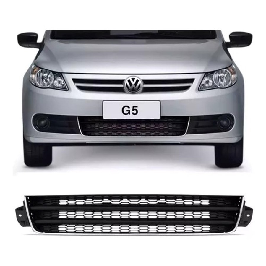GRADE PARA-CHOQUE GOL G5 2008 A 2012 VOYAGE SAVEIRO INFERIOR CENTRAL PRETA COM FRISO CROMADO