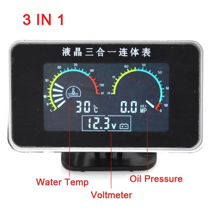 Medidor LCD 3 Em 1 Para Carro , Digital De Pressão De Óleo De Temperatura Da Água , Instrumento Universal 9-36V Caminhão , SUV , RV , Moto920