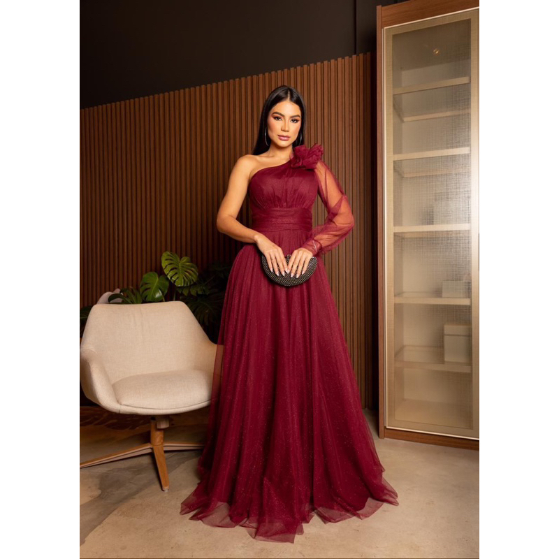 Vestido de festa madrinhas formaturas marsala e mais cores VGL frente única luxuoso com saia de tule