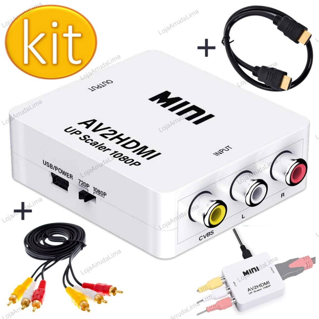 Super Kit Adaptador Conversor Av Rca Áudio Vídeo Para Hdmi + Cabo Hdmi 1m + Cabo Rca
