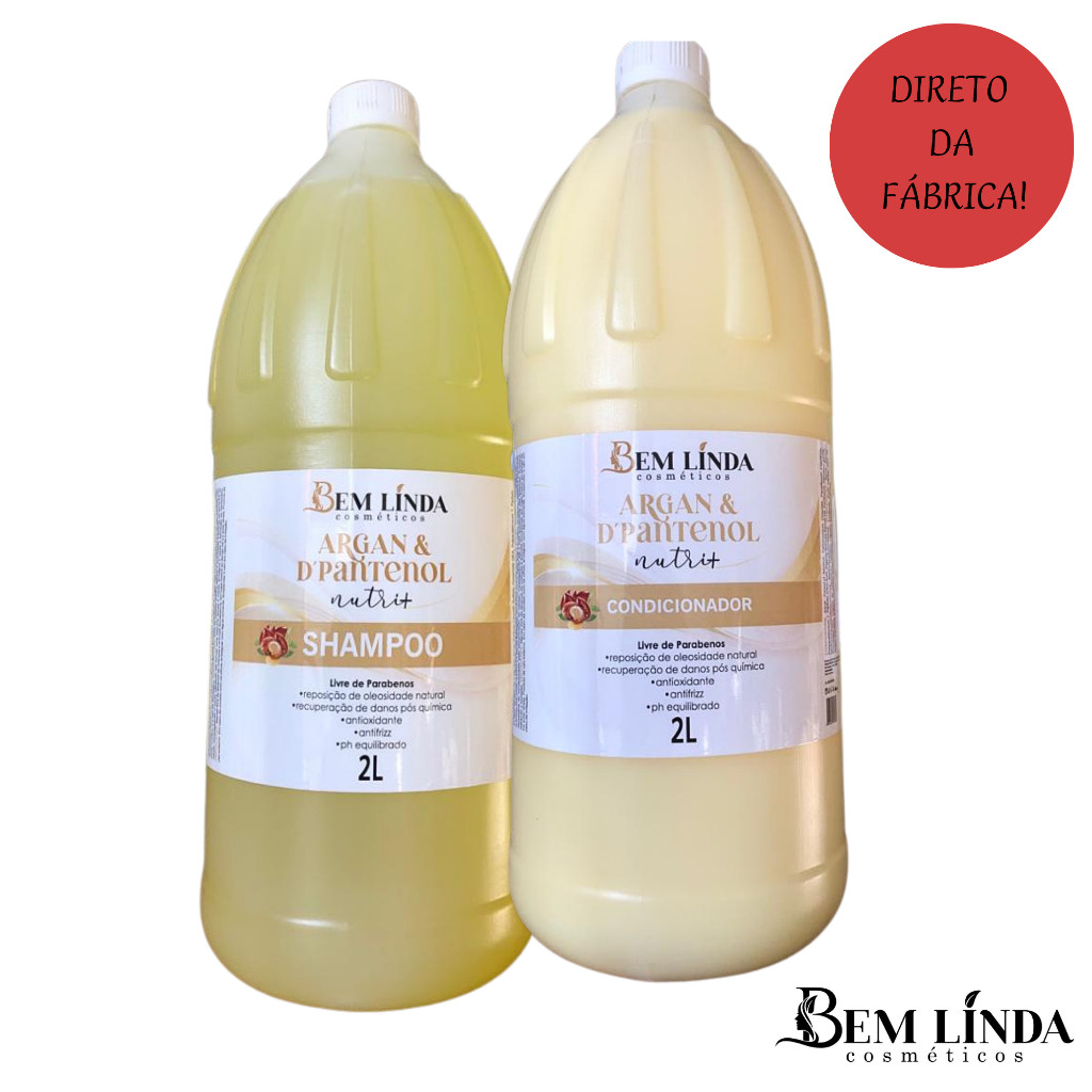 Kit shampoo e condicionador 1 litro Bem Linda Cosméticos - lavatório alto rendimento shampoo hidratante nutritivo creme xampu argan ceramidas erva doce liso extremo queratina keratina neutro galao 1litro 2litros 5litros