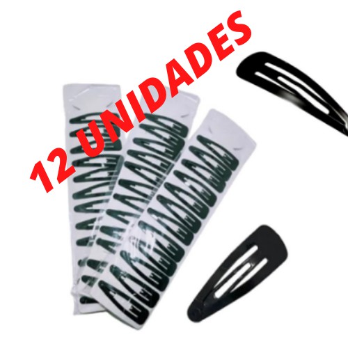 Presilha Tic Tac Para Cabelo Preto Médio com 12 Unidades