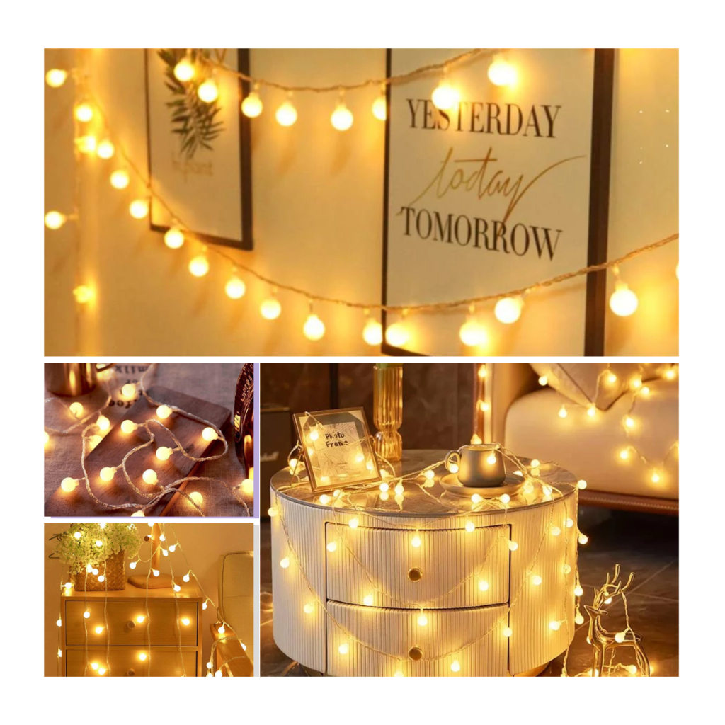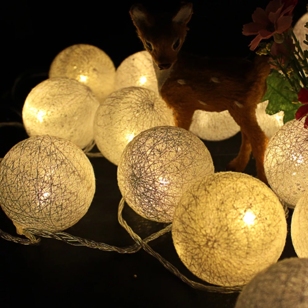 Varal Luz de Led Bolinhas 2,2m Pisca Pisca Decoração Luminária Cordão Bolas Decorativas Branco Quente à Pilhas AA