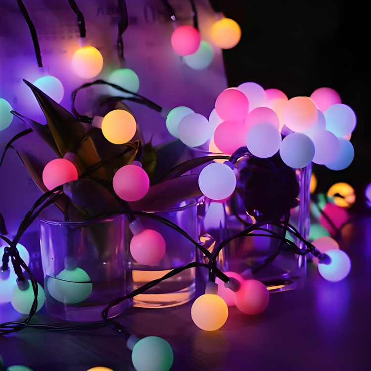 Varal Cordão Pisca Pisca com 40 Bolas LED 6 Metros BIVOLT Fio Transparente Marca V8 Alto Qualidade