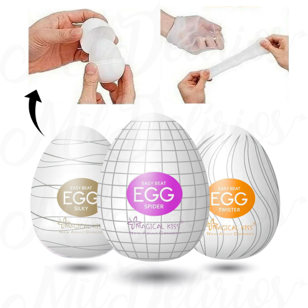 Kit 3 Eggs Masculino Magical Kis Masturbador Ovo com Texturas Sex Shop - Silky + Spider+ Clicker