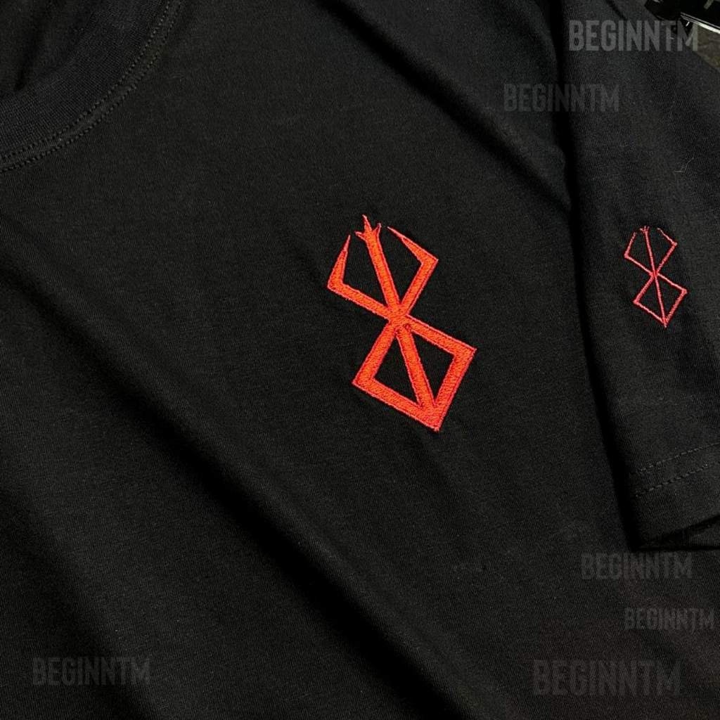 Camiseta Berserk Bordado anime Guts camisa 100% algodão penteado Simbolo Berserk Guts