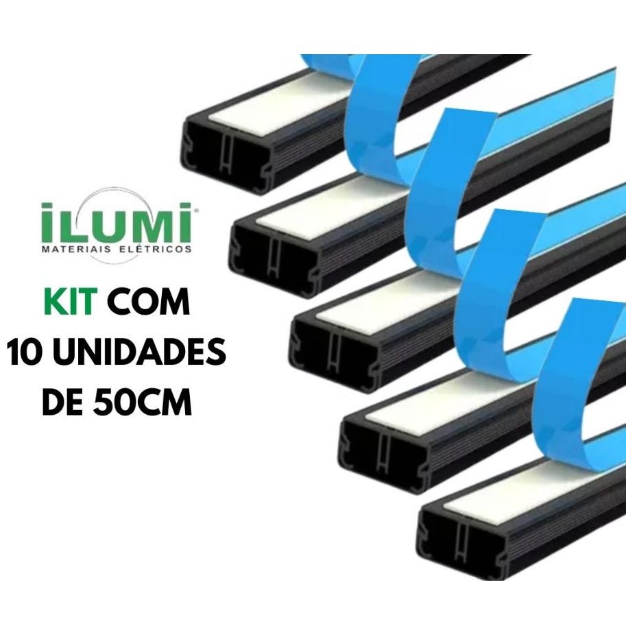 Kit 10 Canaletas Pretas PVC Sistema X Com Dupla Face 500mm Ilumi