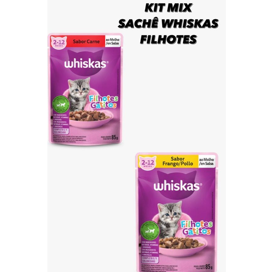 KIT MIX DE WHISKAS sachê para gatos FILHOTE, sabor CARNE E FRANGO, 85g. - KIT com 20 und.