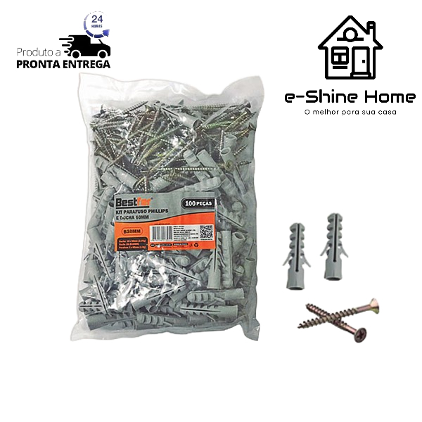 Kit 100 Bucha 8 mm. + 100 Parafuso Phillips 4 x 45 mm. BFH-1830 Bestfer