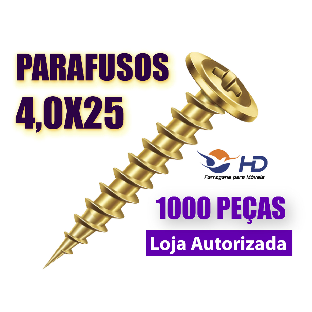 Parafuso 4,0 X 25 Chipboard Flangeado Phillips para Madeira - HD CAIXA COM 1000 peças - parafusos para madeira