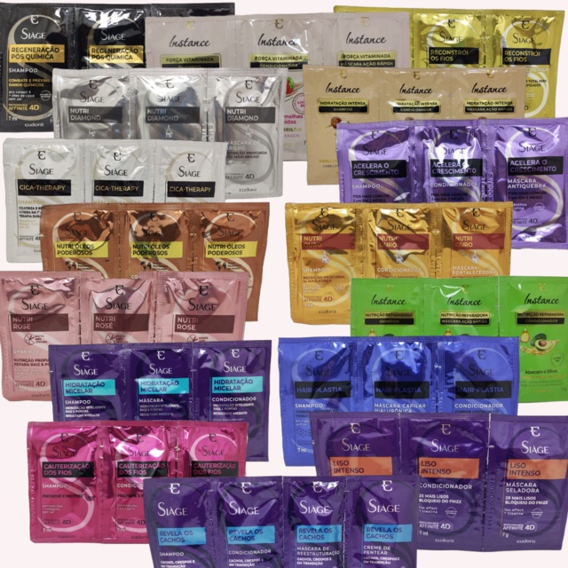 kit com 15 Sachês Linha Siàge Eudora Shampoo, Condicionador e Mascara 7ml