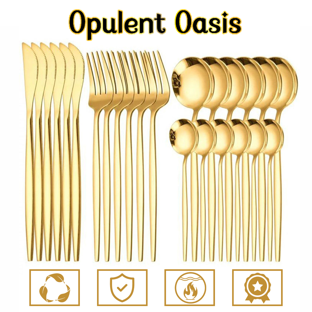 Opulent Oasis>>Kit Jogo Talheres Inox 24pçs Slim faqueiro Em Aço para cozinha utensílios domésticos