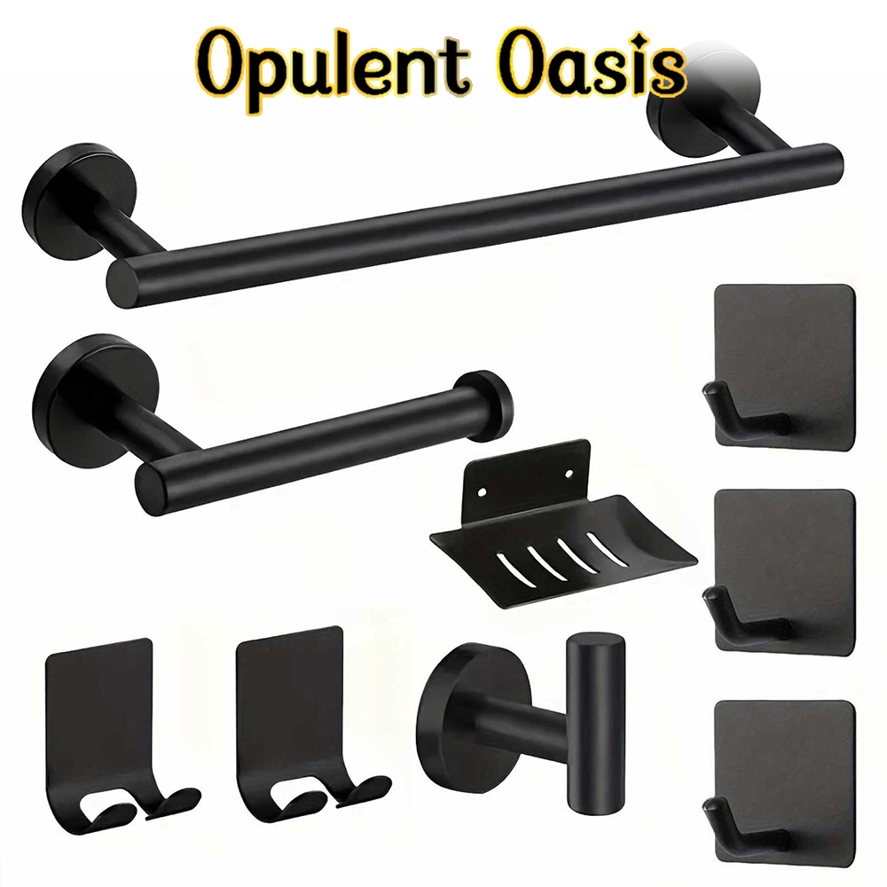 Opulent Oasis>>Conjunto de ferragens para banheiro preto fosco de9peças SUS304 aço inoxidável redondo montado na parede