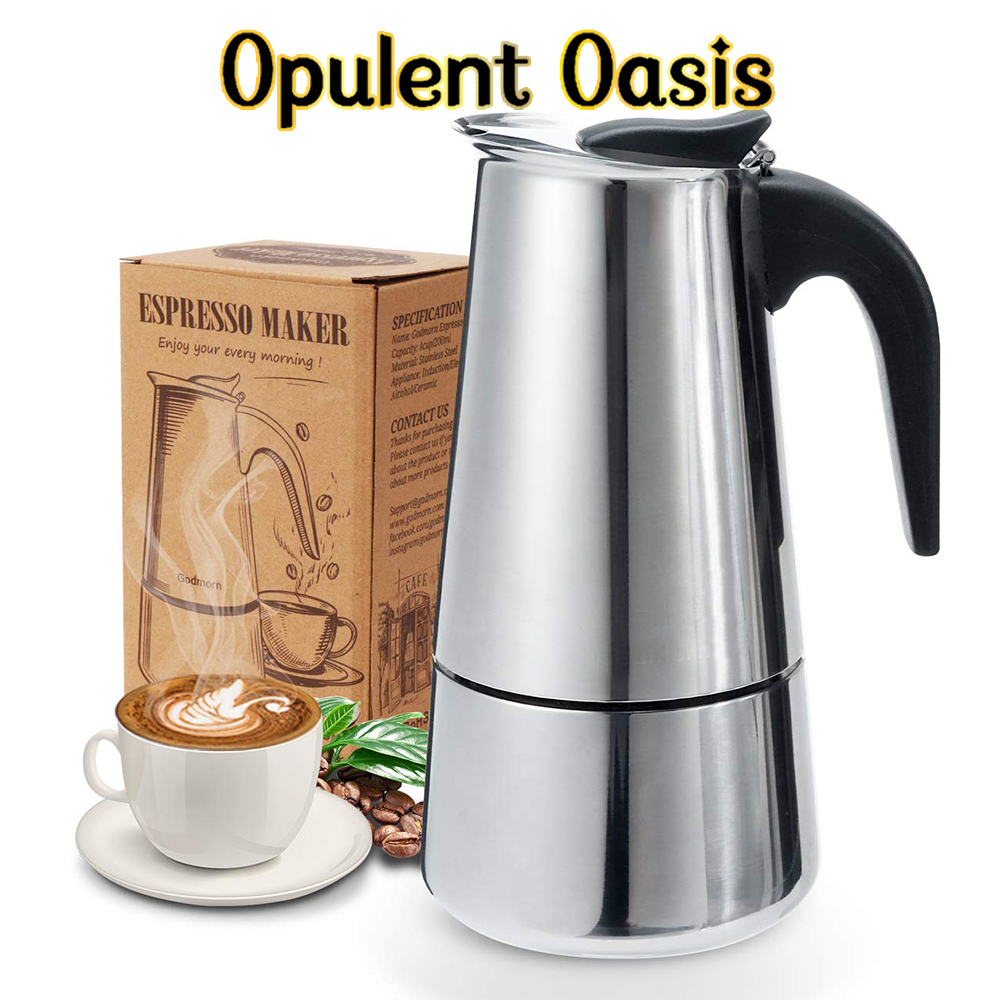 Opulent Oasis>>Máquina de café expresso, cafeteira moka, cafeteira italiana, 300 ml/10 onças/6 xícaras (xícara de café expresso = 50 ml), cafeteira clássica, aço inoxidável