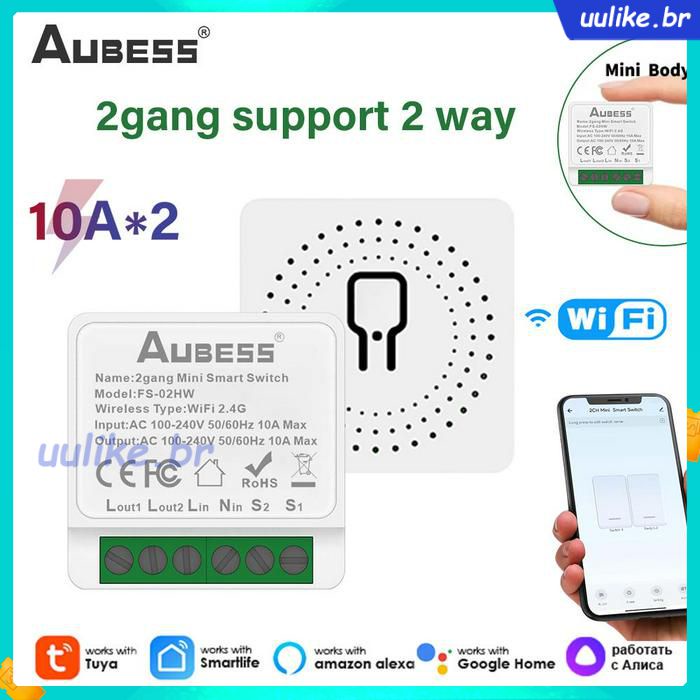 AUBESS Tuya WiFi 1/2/3/4 gang Módulo de Interruptor Inteligente com Controle Dual Way Smart Life Smart Home Work with Alexa Google home Yandex Alice LANSAND LANSAND