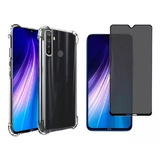 Kit Para Xiaomi Redmi Note 8 Película Privacidade + Capa Capinha Anti Shock