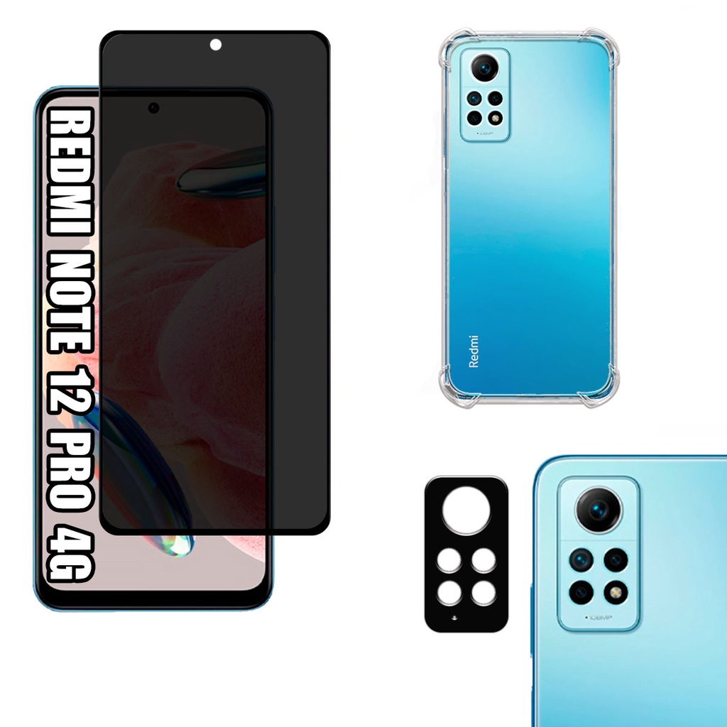 KIT Para Xiaomi Redmi Note 12 Pro 4G | Película de Privacidade 3D - Capa Capinha Anti Shock - Película da Câmera 3D