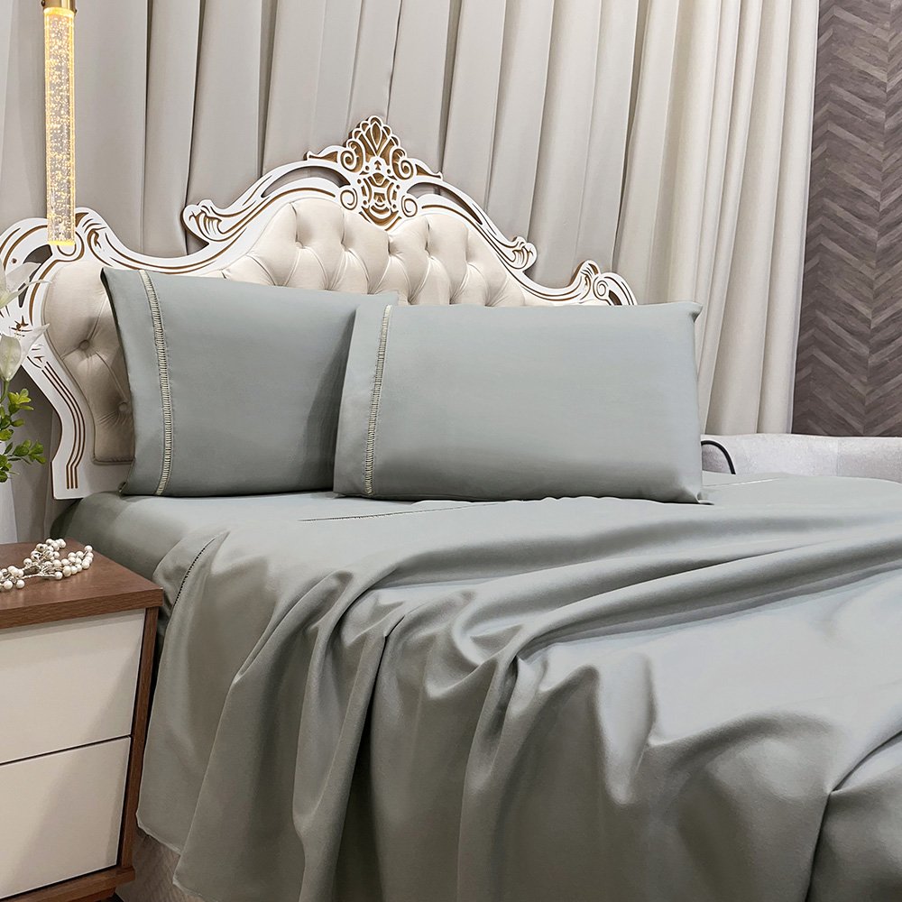 Jogo de Lençol Queen Size 4 Peças Percal 400 Fios Toque Macio Verde Água